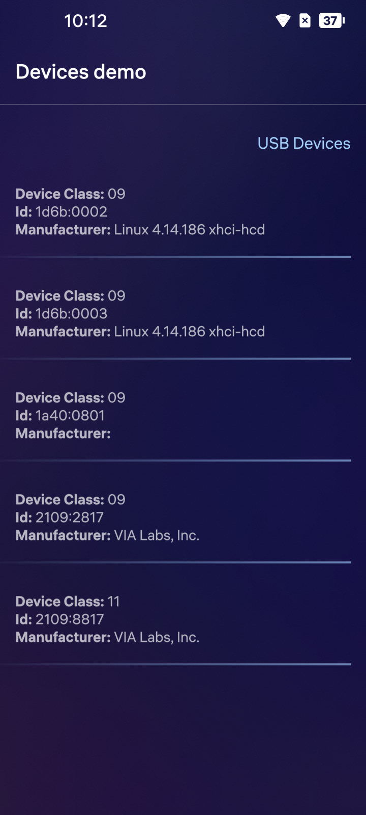 An example demonstrating how to use the USB API in the Aurora operating system. It shows one way to build and use the libusb library.