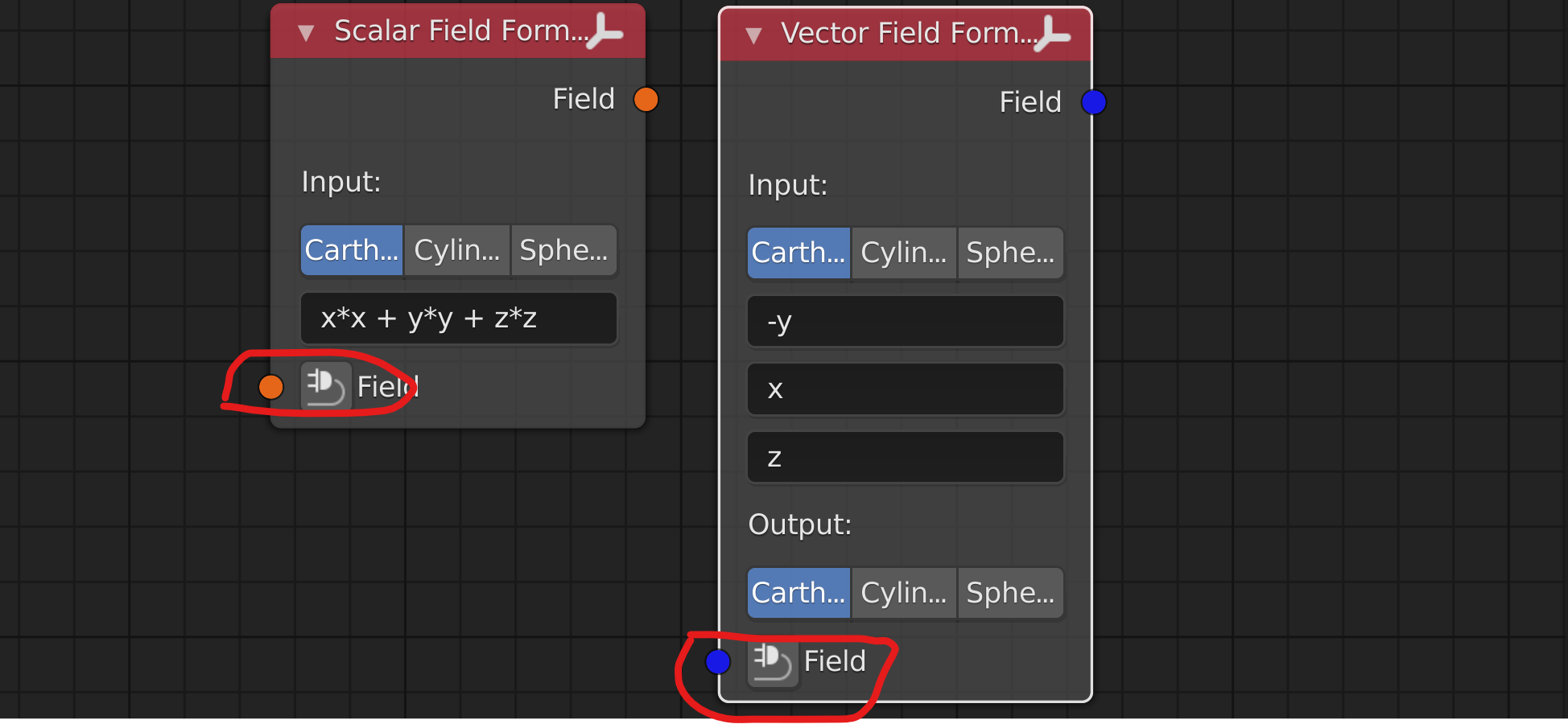 how to understand inputs in Scalar Field Formula and vector field formula?